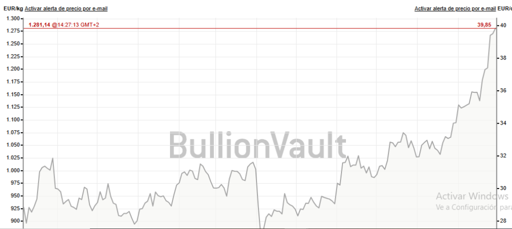 De hecho, al cierre de esta edición cotiza a 12,83 euros gramos, una cifra nunca vista desde los antiguos récords de 2011 en los que rozaba los 10 euros. Una cifra ahora ya ‘barata’ tal y como apuntan las expectativas.