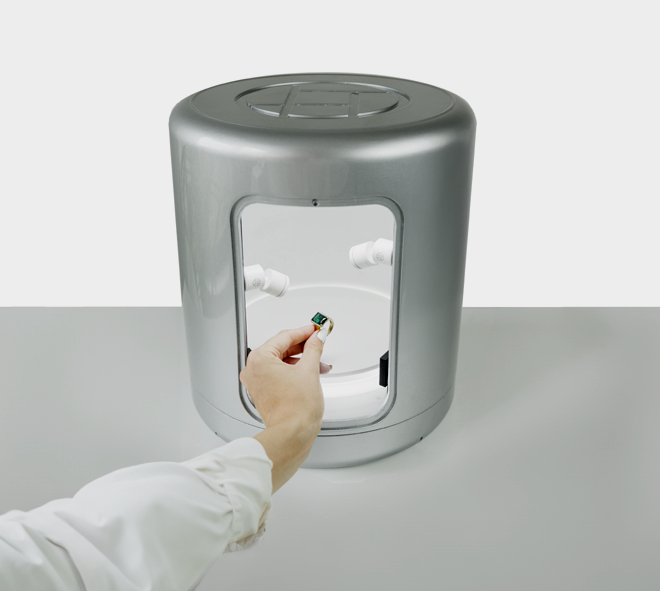 ALO PHOTO SPHERE está equipada con cuatro fuentes de luz independientes (luz frontal, luz posterior, luz difusa y luz puntual externa), contraladas en intensidad y color mediante software.